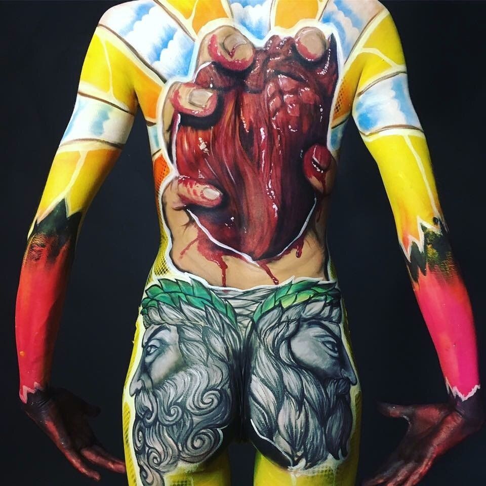 Mandi Ilene hosted jams at member's homes for a few years, then after everyone had a great time painting, laughing and taking photos, it seemed uneventful that the evening would end and the model would go home to wash off her artwork without being able to show it off. Mandi moved her jams to a local bar and brought in professional photograpy, matched artists and models up together and started putting on a small show for bar's guests. Eventually her dream of bringing the body art to the stage came to fruition when an event center asked her group to entertain guests with body art at a large Halloween Party. The event went over so well, we booked a holiday show and the name BASE was born.