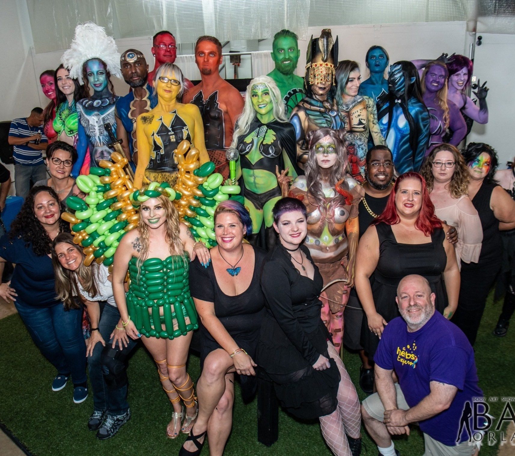 BASE stands for Body Art Showcase and Exhibit and is the brain child of Mandi Ilene Schiff. Many years ago, Mandi formed a group for face and body painters in Orlando called the Central Florida Face and Body Painting Guild. The group was created for new and experienced artists collaborate ideas, share gigs and host get togethers called "jams", much like a musician's jam.